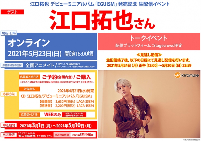 江口拓也 デビューミニアルバム Eguism 発売記念 生配信イベント イベント情報 アニメハック